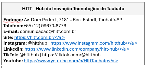 HUB DE INOVAÇÃO TECNOLÓGICA DE TAUBATÉ